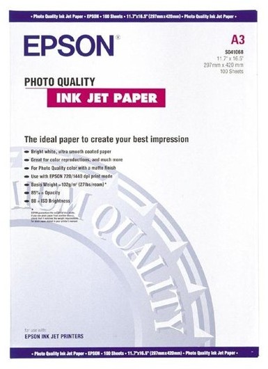 Epson Photo Quality Inkjet Paper A3, 104g/m2, 100 ark