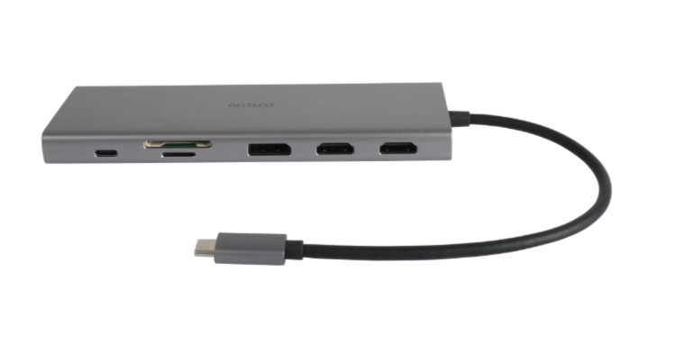 Maximera din anslutbarhet och anslut upp till 3 bildskärmar med denna 12-i-1 USB-C dockningsstation. Designad för att vara mångsidig och effektiv, med ingångar som USB-C, USB-A, RJ45, HDMI och DisplayPort till SD/microSD-kortplatser och ett 3,5 mm ljuduttag så täcker den alla dina anslutningsbehov. Dockningstationen är även utrustad med upp till 85 W Power Delivery för snabb och effektiv laddning av dina anslutna enheter.
