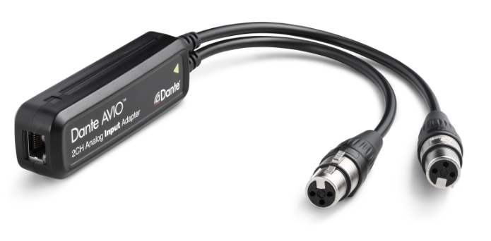 Dante AVIO Analog Adapters are available as balanced line-level single or dual-channel input or output adapters, with high-quality XLR connectors. Use the Analog Dante AVIO Adapters to add Dante networking to analog amplifiers, powered loudspeakers, signal processors, music players or any other analog audio device, for hum-free digital signal distribution throughout your audio network.