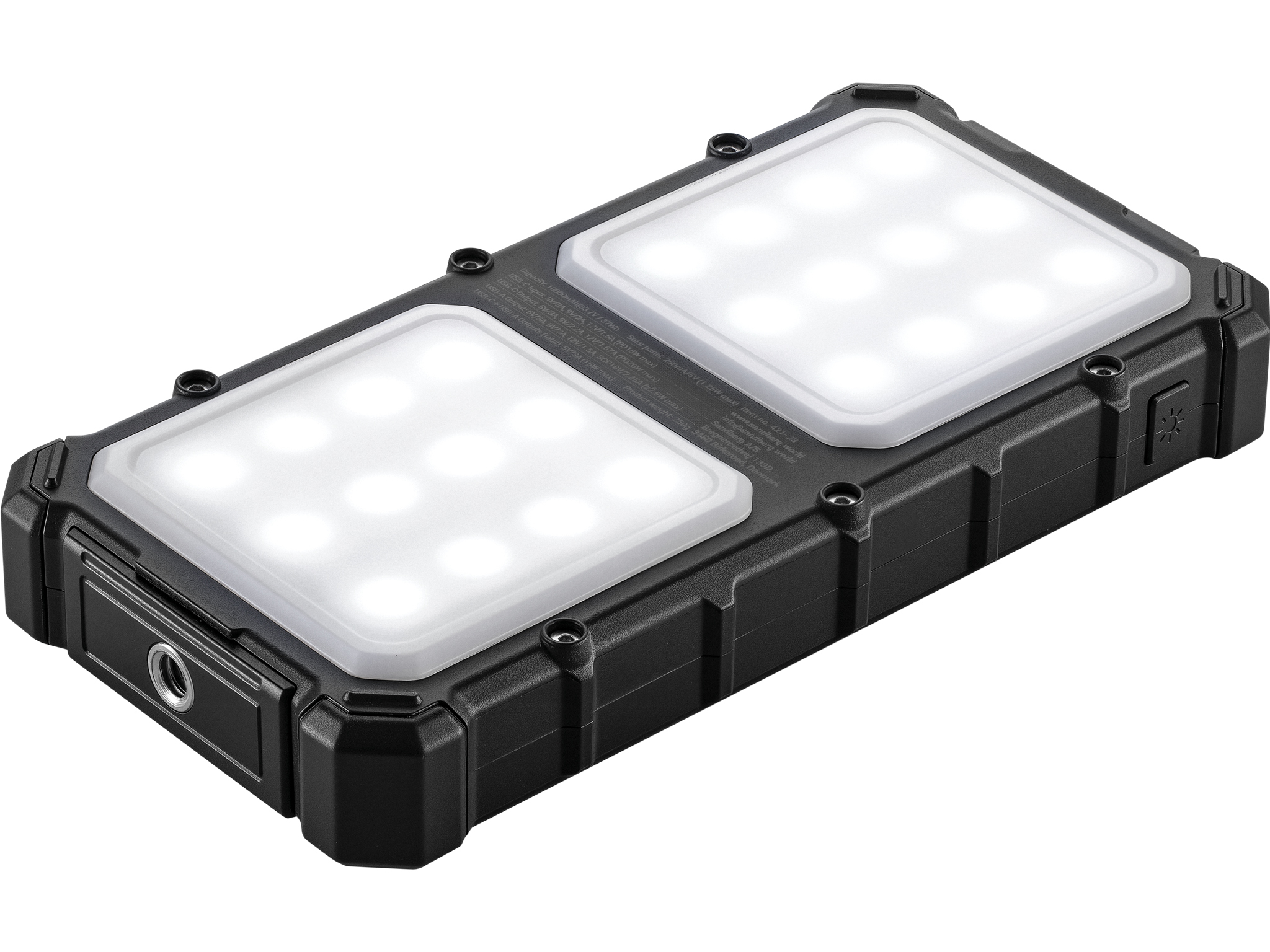 Sandberg Solar Powerbank CampLED 10000 är din pålitliga följeslagare när äventyret kallar – oavsett om det är en vandring i vildmarken, en helgcamping under stjärnorna, eller bara vardagen där ström inte alltid finns till hands. Den kraftfulla kapaciteten på 10000 mAh ger dig gott om energi för dina enheter, medan den inbyggda solpanelen låter dig ladda direkt från solen. Powerbanken är robust byggd, vattentät och redo att stå emot vind, väder och vilda förhållanden. Och med den kraftfulla inbyggda LED-lampan kan du lysa upp natten, laga mat i mörkret eller hitta tillbaka till tältet.