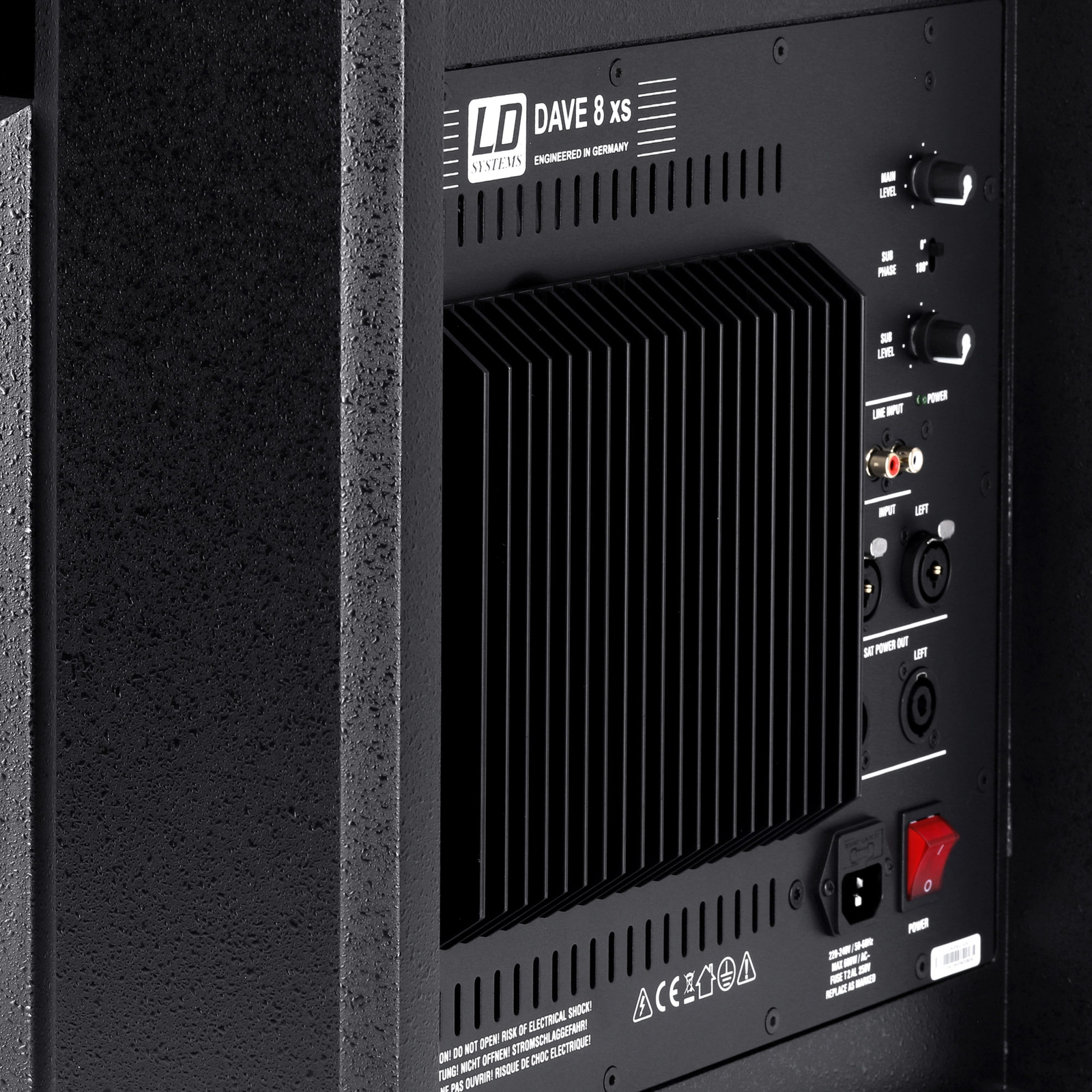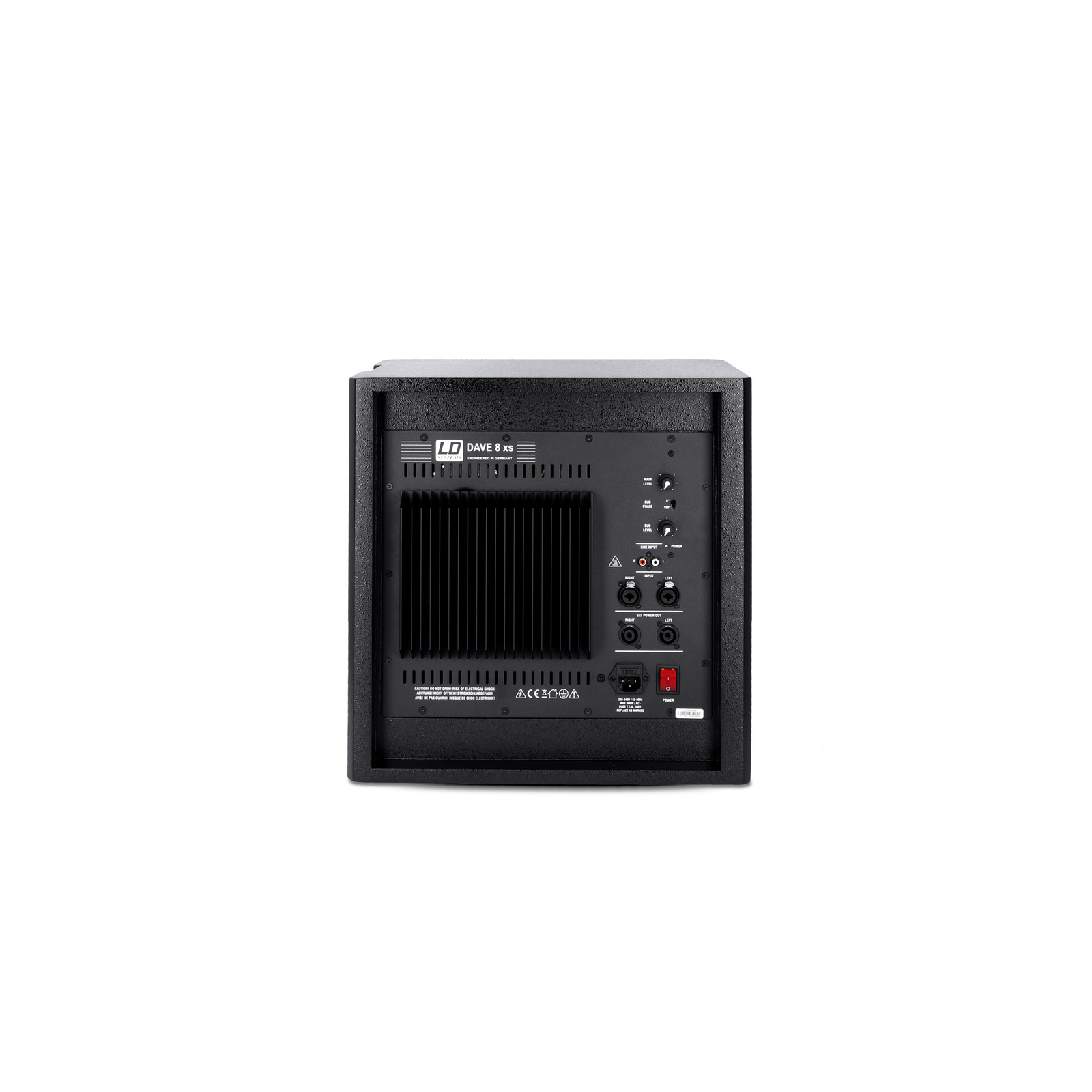 Systemet ger kristallklart ljud och är speciellt utformat för multimediaapplikationer som hemma-PA eller spel; det är också lämpligt som monitor för DJ:s eller keyboardister eller som musiksystem för mindre lokaler som barer och kaféer. Den högpresterande A/B-förstärkaren som är inbyggd i subwoofern hanterar både subwoofern och satelliterna. Multimediasystemet LD DAVE 8XS har linjeingångar i XLR- och RCA-format och är utrustat med alla standardskydd. Den inbyggda begränsaren skyddar systemet från överbelastning och säkerställer lång livslängd. På sidan av subwoofern finns det, förutom en ON/OFF-brytare och en fasomvändningsbrytare (180°), en separat subwoofervolymvred som låter dig hitta den perfekta blandningen av lysande diskant, kraftfulla mellanregister och kraftfull bas.