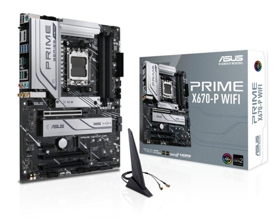 Asus PRIME X670-P WIFI, AMD AM5, ATX, 4xDDR5, 3xPCI Express, 3xM.2 + SATA3 RAID, HDMI/DP, USB-C, 2.5Gbe LAN, WiFi 6, Bluetooth, Aura Sync RGB