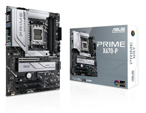 Asus PRIME X670-P, AMD AM5, ATX, 4xDDR5, 3xPCI Express, 3xM.2 + SATA3 RAID, HDMI/DP, USB-C, 2.5Gbe LAN, Aura Sync RGB
