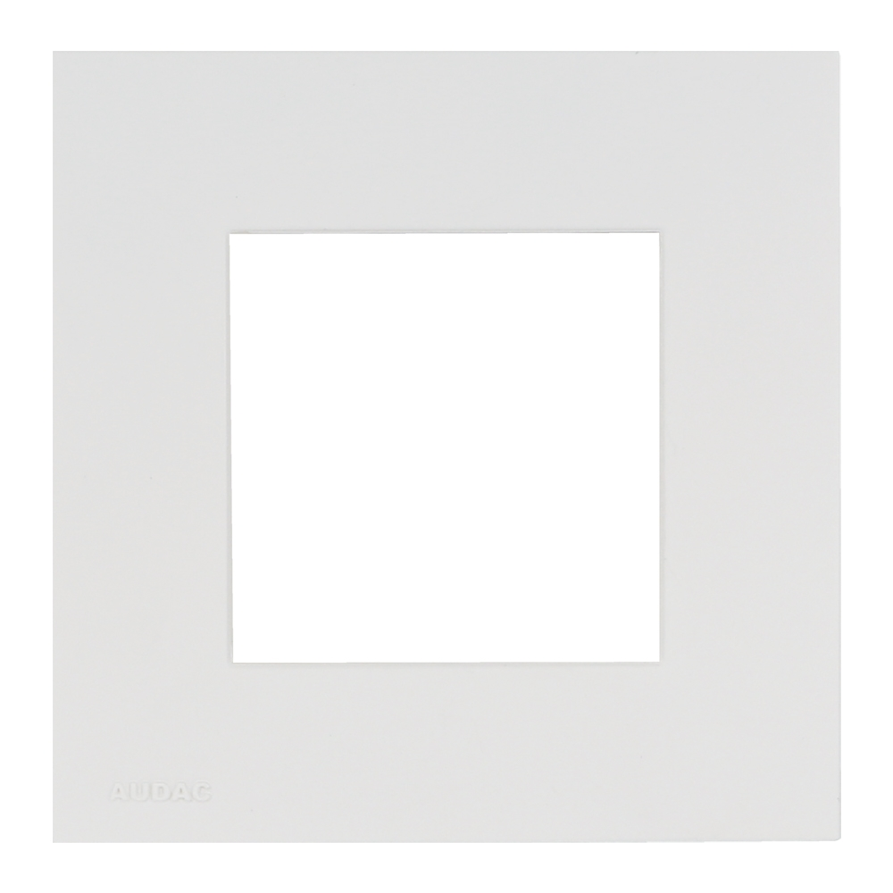 Audac CF45S/W monteringsram/adapter för infälld montering med 45x45mm installationsenheter som exempelvis extern volymkontroll, kontakterade uttagspaneler samt väggpaneler för Audacs zonmixers. Vit version.