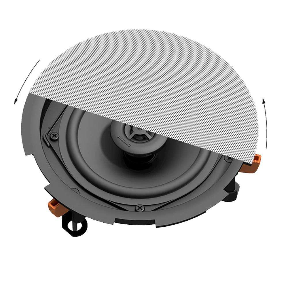Det heltäckande gallret har den snabbmonterade TwistFix™-funktionen, och är helt utan den vanliga kragringen runt gallret. Det gör att högtalaren blir än mer diskret och smälter fint in mot taket. QuickFit™-systemet gör att högtalarna är lätta att installera med hjälp av tre låsklämmor som håller högtalaren på plats samt enkel inkoppling av kabeln i FastCon™-kontakten.