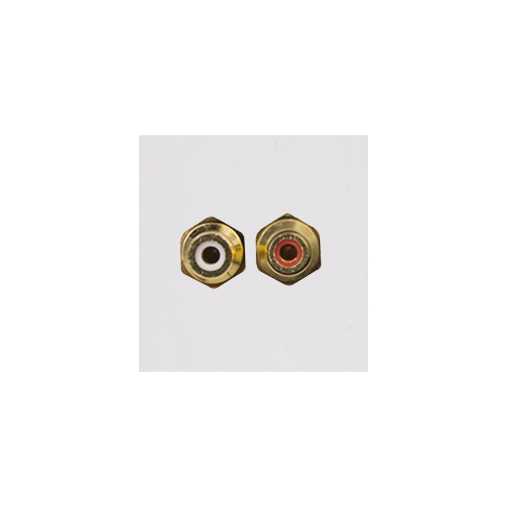 Kontaktpanel med 2 x RCA/phono, hon-kontakt. Passar i Audacs monteringsramar för infällnad (enkel, dubbel) samt även i Audacs väggboxar/förhöjningsramar för utanpåliggande väggmontage.